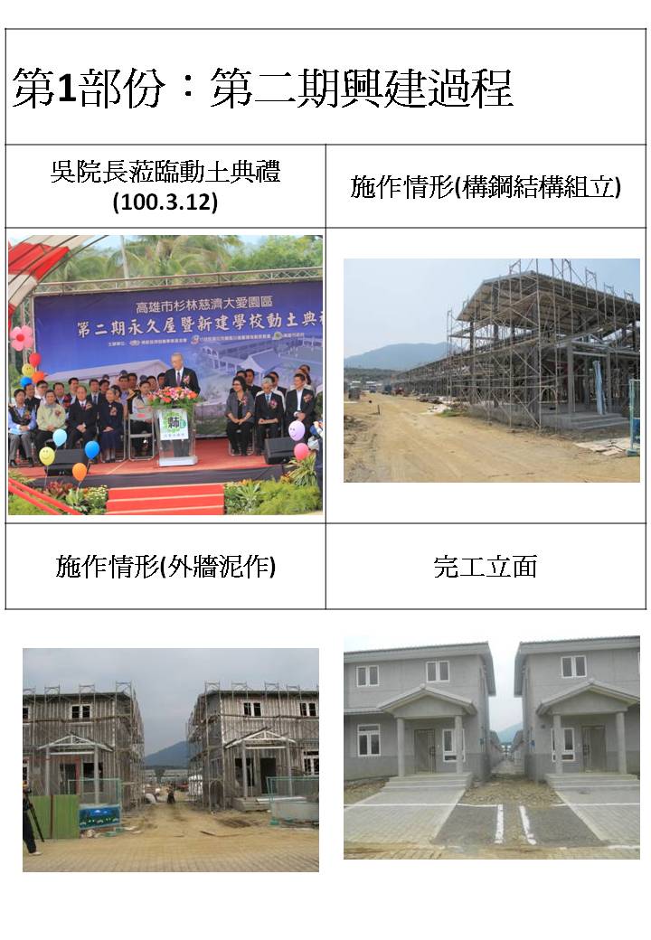 | 動工日期 | 第1期:98.11.15 第2期:100.03.12 | 完成日期 | 第一期:99.02.11(入厝) 第二期:100.10.06(入厝) |