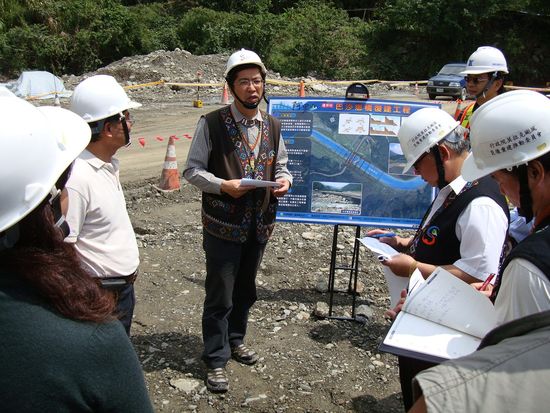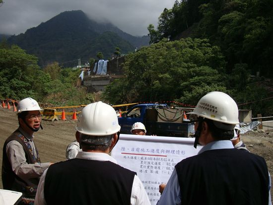 嘉義縣阿里山鄉169全線復建將於7月完成,行政院重建會陳振川執行長特於今(8)日由阿里山管理處曾處長、公路總局五工處蔡處長、嘉義縣政府重建團隊人員等陪同,巡視本線34K道路、特富野橋及巴沙娜橋等復建工程。