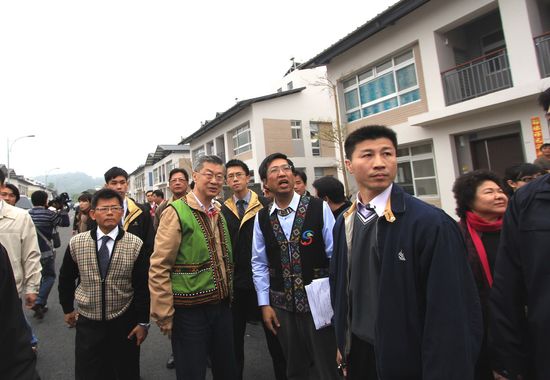 在甫上任第1周忙碌的行程中,陳院長特地一早南下訪視莫拉克重建區行程,此行由行政院林益世秘書長、兼行政院重建會副執行長陳振川政務委員、楊秋興政務委員、高雄市陳菊市長、慈濟基金會林碧玉副總執行長、永齡有機農場李惟裕場長及小林社區重建發展協會蔡松諭會長等陪同參訪。