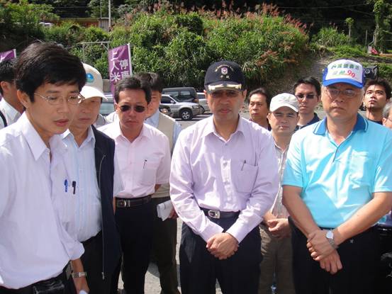 重建會副執行長陳振川率主管等一行於今(15)日勘查南投縣廬山溫泉地區莫拉克颱風災後復建情形,此行由南投縣政府副縣長陳志清、經濟部水利署總工程司王瑞德等陪同,聽取塔羅灣溪治理工程、北坡滑動監測報告、緊急撤離計畫,以及後續安置與撤離準備及產業重置計畫等。