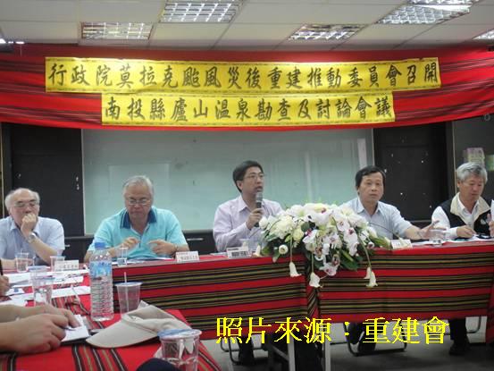 重建會陳副執行長振川指出,廬山溫泉威脅來自北坡的滑動及塔羅灣溪上游的土石沖刷,針對地調所所作廬山溫泉北坡岩體進行滑動調查分析研究與監測報告,陳副執行長表示,目前須在減災與避災有限的時間內積極作好準備,並責成農委會水保局對於地表水的處理、經濟部地調所對北坡滑動的監測與預警、經濟部水利署對塔羅灣溪河川治理、縣府應有效改善土地超限利用現象,整合相關監測警訊,迅速通報。並請各相關單位,將相關的治理計畫及重建計畫等執行計畫,及辦理期程提送重建會,俾整合加速推動執行。