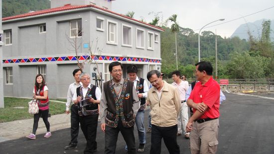 山美永久屋是嘉義縣阿里山鄉第一個離災不離村的基地,目前已完工正進行環境的整理作業,將於4月28日落成啟用;行政院重建會執行長陳振川特於今〈8〉日由嘉義縣政府、山美永久屋管理委員會莊主委、山美莊村長等陪同前往視察。