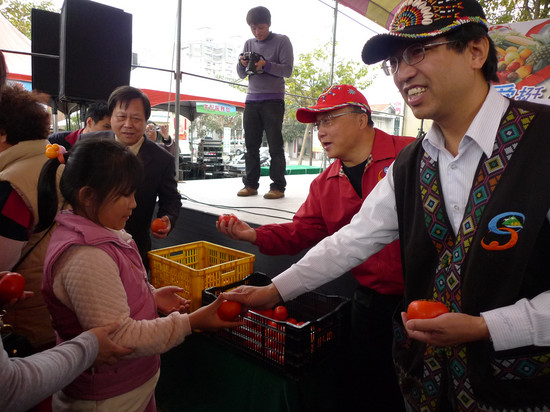 本日氣候涼爽合宜,活動在陳副執行長、胡市長及原民會夏副主委共同揭幕後,由陳副執行長與胡市長發送災區水果給現場民眾,為活動現場掀起一波高潮,活動現場扶老攜幼人潮踴躍,各個攤位買氣熱絡,在春節年關前為災區產業注入一道暖流。