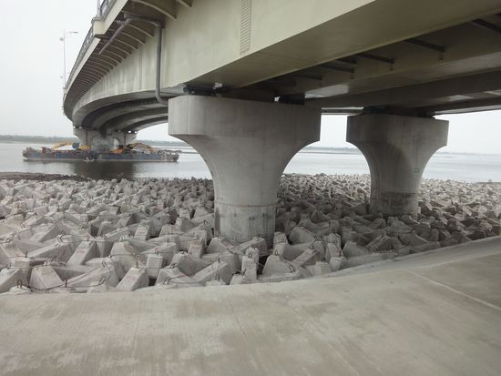 為配合新雙園大橋施工預留的林園堤防67公尺防汛缺口,在行政院重建會督導公路總局及施工團隊積極趕辦下,順利在汛期前完成銜接,確保攸關年產值2,300億元林園工業區的安全。