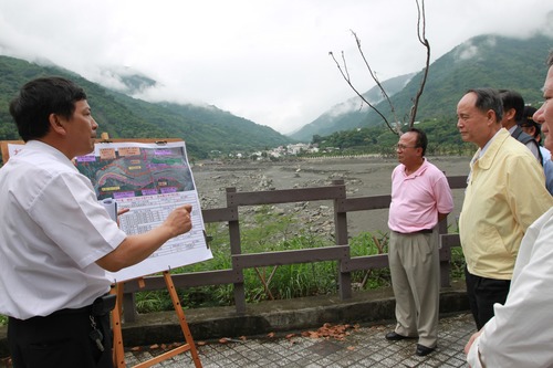 行政院秘書長兼行政院莫拉克颱風災後重建推動委員會執行長林中森,關切汛期疏浚及重建進度,今(28)日率領服務團隊前往台東縣金峰鄉視察太麻里溪疏浚進度,指示相關單位全力進行疏浚整治,隨後還參加金峰鄉嘉蘭村永久屋基地動土典禮,對於都魯烏外部落頭目鄭炳祥無償捐出2000多坪土地提供建設新家園的義舉及紅十字會、世界展望會共同協助援建的善行,致上最深的敬意及謝意。
