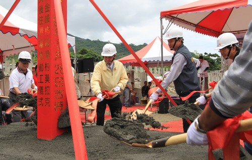 林執行長一行人,隨後前往金峰鄉嘉蘭村永久屋基地動土典禮現場。林執行長應邀致詞時特別感謝鄭頭目無私奉獻土地,並感謝重建會、原民會、林務局、河川局、NGO組織、縣市政府、議會等單位提供相關協助。他強調,台灣真是一個充滿愛心的公民社會,天災一發生,全國都動員起來,投入救援及重建,民間團體與政府相互合作下,發揮超高效率。