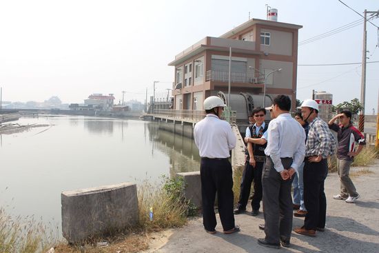 張恒裕主任秘書隨後會同屏東縣政府水利處張國輝科長與屏東縣養殖漁業發展協會黃再團理事長現地勘查佳冬鄉鄰近塭豐漁港水閘門第一排水路與第二排水路間匯流處泥砂淤積情形,並指示,排水路河道淤積,請屏東縣政府水利處於今(102)年汛期前完成清淤工作。