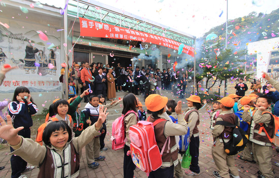 外觀融合布農族、南鄒族圖騰的高雄市桃源圖書分館即將趕在今年6月底前完工啟用,贊助整建的國際佛光會今(5)日協同相關合作單位舉行「攜手同「原」圓一個閱讀的夢-高雄市立圖書館桃源分館整建開工典禮」,桃源國中小師生們也以歡欣鼓舞的心情來慶祝新圖書館的到來。