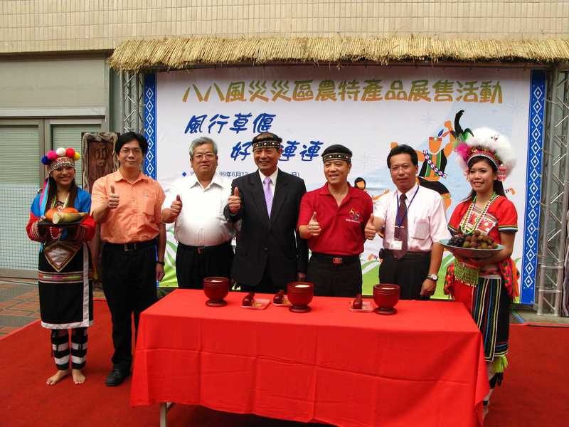為協助莫拉克風災災民重建家園,提升災區主要之農業、漁業及原住民文創手工等產業之能見度,臺北市政府與台北市農會在行政院莫拉克颱風災後重建推動委員會、行政院原住民族委員會及農業委員會等單位協助下,將於本(6)月12、13日(週六、週日)兩天,假臺北市政府市府大樓前市民廣場舉辦「八八風災災區農特產品展售活動」。現場設置130個展售攤位,邀請八八風災重災區:南投縣信義鄉、嘉義縣阿里山地區、高雄縣甲仙鄉(小林村)、那瑪夏鄉、六龜鄉(新開部落)、屏東縣林邊鄉、佳冬鄉、台東縣卑南鄉(知本溫泉區)、太麻里鄉等地區之原住民農民北上展售當地農特產品。