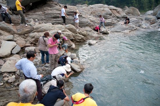 遊客們尋找美麗的鯝魚(照片由台灣發展研究院提供)